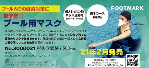 三立社の製品です。プール用品やコースロープを扱う三立社ですが、2021年2月からマスクを扱い始めています。製造元はFOOTMARK社。