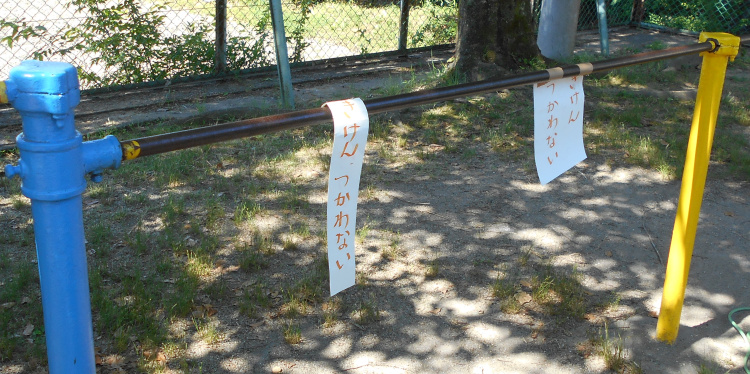 鉄棒は背中や頭から落ちる可能性がある遊具です。頭からの落下は、顔面や頸椎に重大なケガを負う可能性があります。