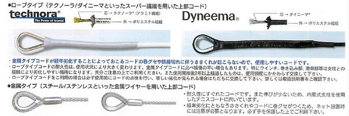 「耐久性があるが安全性が低いもの」は価格が安いスチールワイヤーであることが多く、安い価格帯のネットにデフォルトで付属しているのもこちらのタイプです。それらは出来るだけ早期に安全性が高いものへと交換することが望ましいと言えます。